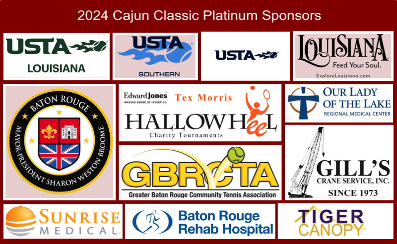 The Cajun Classic is supported by the United States Tennis Association (USTA), USTA-Southern Section, the Louisiana Tennis Association (LTA), and the Greater Baton Rouge Community Tennis Association (GBRCTA), which is the presenting sponsor.